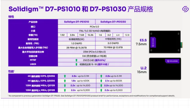 Solidigm(思得)2024年推出D7-PS1010和PS1030