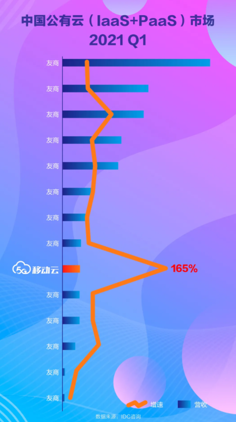 查看更多國(guó)際權(quán)威數(shù)據(jù)咨詢公司IDC最新發(fā)布了《中國(guó)公有云服務(wù)市場(chǎng)(2021第一季度)跟蹤》(IaaS+PaaS),移動(dòng)云再次跑出加速度,Q1同比增速達(dá)165%,繼續(xù)穩(wěn)居行業(yè)第一!移動(dòng)云的公有云市場(chǎng)份額攀升至第9! 自云改以來,移動(dòng)云以穩(wěn)健的姿態(tài)不斷前進(jìn)。2019年市場(chǎng)排名12,2020年市場(chǎng)排名11,市場(chǎng)地位持續(xù)提升,大幅度前進(jìn)。 移動(dòng)云始終堅(jiān)持“更安全,更智慧”的發(fā)展理念,借助移動(dòng)行業(yè)優(yōu)勢(shì),積極拓展政企客戶,為客戶提供豐富的行業(yè)解決方案和穩(wěn)定安全的云產(chǎn)品,滿足客戶需求,目前服務(wù)客戶數(shù)達(dá)百萬(wàn)級(jí)。 在服務(wù)客戶的規(guī)模不斷擴(kuò)大、市場(chǎng)份額增速遠(yuǎn)超行業(yè)水平的情況下,移動(dòng)云堅(jiān)持推進(jìn)提質(zhì)工作,為客戶提供高品質(zhì)的產(chǎn)品…